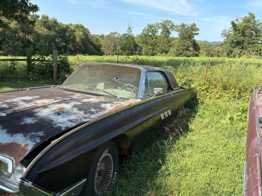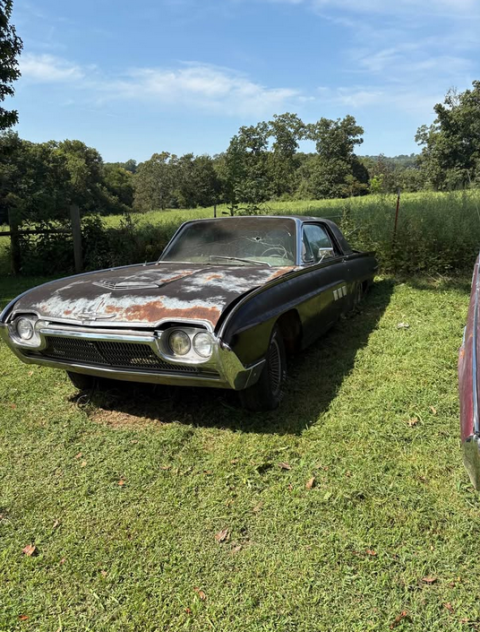 1963 Thunderbird. No motor, no transmission, no title but can provide a bill of sale. Got it years ago for a few parts for another Thunderbird. Interior is mostly complete just dirty. All glass is intact except the windshield that is busted. Has some rust but has a lot of potential for a donor parts car or a builder. Asking $700. Located in Stilwell